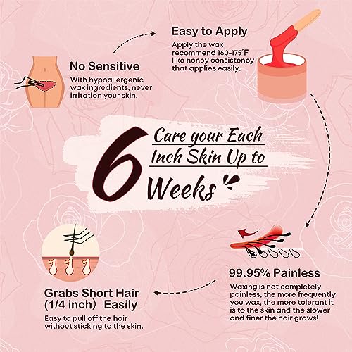 🌹【Money Saving & Long Lasting Result】 Enjoy the same benefits of a high-end salon waxing at a fraction of the price. Wax when it’s convenient for you in the privacy of your home. Rose wax beads for brazilian waxing is designed for the wax novice with stripless, flawless hair removal lasts for 4-6 weeks, no need for appointment salon anymore.