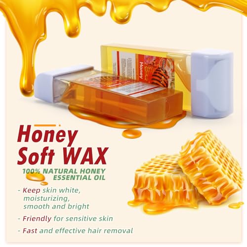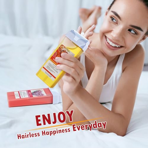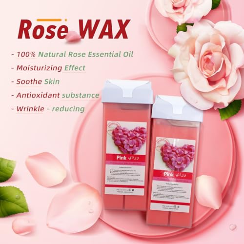 4 Pack Wax Roller Refill: Soft wax roller made of natural material, 2 honey wax is extracted from honey essential oil. 2 rose roll on wax refill contains rose extracts. The wax roller kit is effective for hair removal and is gentle on the skin.