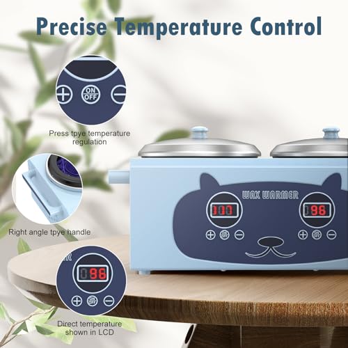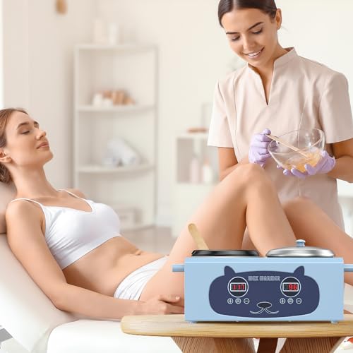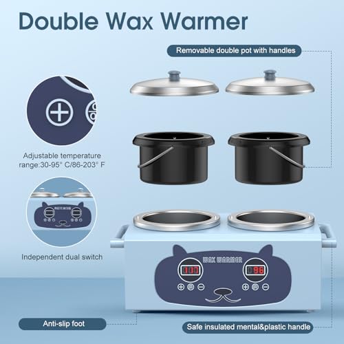 Wax Warmer for Hair Removal Double Wax Pot Warmer Professional Wax Heater with Waxing Kits,Blue