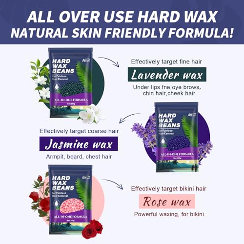 💜【100% Natural Wax Beans】Our hard wax kit with rose, jasmine and lavender different wax beans (4 bags total ). Our wax beans are made with natural and gentle ingredients to minimize skin irritation and inflammation and are also friendly to sensitive skin. It’s easy to have smooth, hairless skin without an expensive salon!
