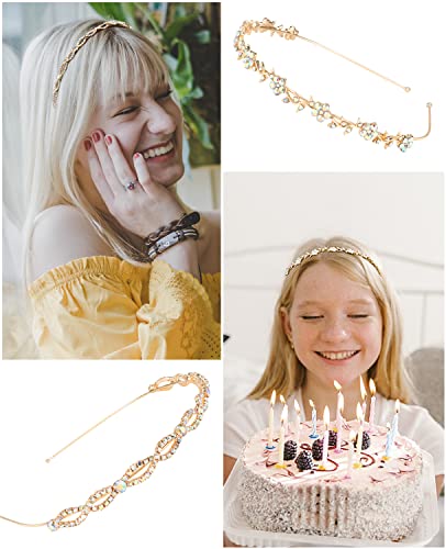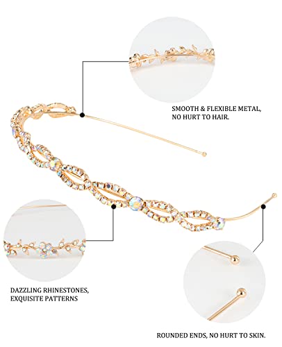 Wecoe 4 Pack AB Rhinestone Headbands Gold Metal Headbands Flower Girl Bridal Wedding Headband Crystal Headpieces Flower Leaf Butterfly Headband Formal Hair Accessories For Women Girls Gifts