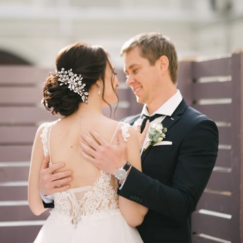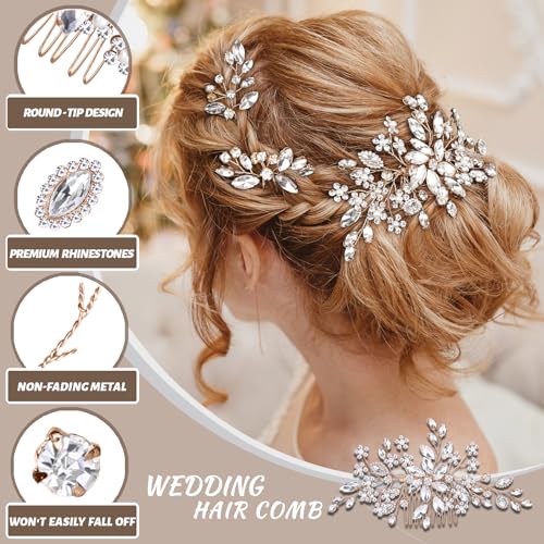 【HIGH QUALITY MATERIAL】The hair comb is made of non-fading copper wire, adorned with 155 A-grade rhinestones and 15 pearls. There will be no issues of color fading or stones falling off.The hair comb weighs only 0.06BL and features a rounded head design. It is lightweight and comfortable to wear, without causing any skin irritation.