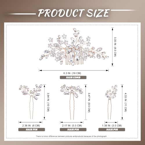 【WEDDING HAIR PIEC SETS】This set includes one crystal hair comb and three crystal hairpins. Can be used individually or together as a set, Versatile mix and match. Also includes two hair clips as a gift, which are convenient for securing the hairstyle.