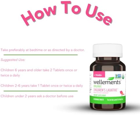Our Organic Children Laxative tabs are formulated to gently help relieve occasional constipation using only safe and gentle certified organic ingredients including organic maple sugar and organic extra virgin coconut oil, both known to have mild laxative properties. Our kids stool softener tabs provide a safe and effective overnight relief constipation remedy without the use of harsh chemicals. Our kids constipation relief tabs are best given in the evening before bedtime to help get things moving by morning. They have a yummy chocolate flavor that kids love. For constipation relief for kids age 2 and older, take preferably at bedtime or as directed by a doctor. Children 2 to 6 years take 1 tablet once or twice daily, children 6 years and older take 2 tablets once or twice daily. Our Organic Children Laxative tabs are third party tested for purity, potency and contamination and are free from Unnecessary Preservatives, Artificial Colors, Artificial Flavors and the Top 9 Most Common Allergens. At Wellements we are parents supporting parents by providing everything we can to help. You do the hard work of parenting, we will do the work to ensure providing clean products for your little one is the easiest part.