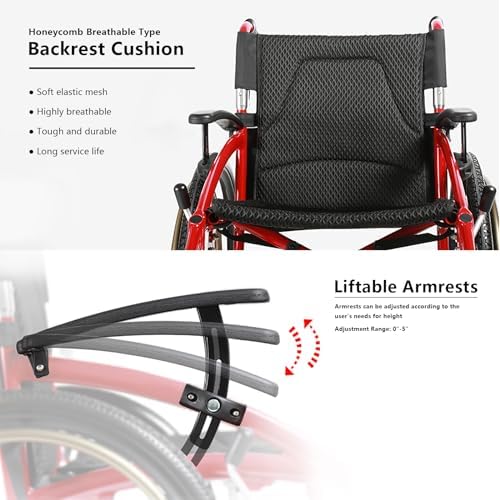 LUXURIOUS & CHIC DESIGN: Imbued with Premium-Quality Cushions on the Seat and Backrest, Our Wheelchairs Offer an Adjustable-Angle Arm Design for an Even More Comfortable Fit and Reliable Support for Adults. The Raised Footrests Provide a Restful Experience for Elderly Users.