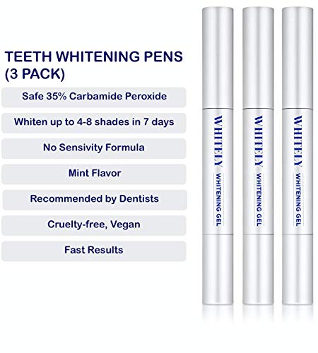 WHITELY Premium Teeth Whitening Pen (3 Pack), 35% Carbamide Peroxide Gel, 30+ Uses, No Sensitivity, Painless, Effective, Easy to Use, Travel-Friendly, Natural Mint Flavor