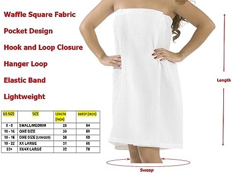 Women’s Bath Shower Wrap Bathrobe, Adjustable Closure Lightweight Waffle Body Spa Wrap