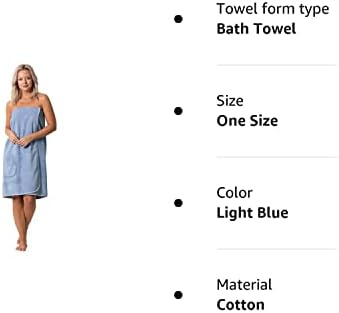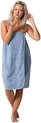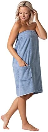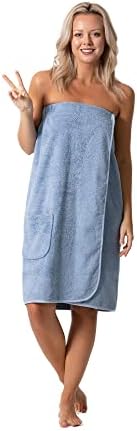 Women’s Terry Cloth Spa and Bath Towel Wrap with Adjustable Closure & Elastic Top (Light Blue, Large/One Size)