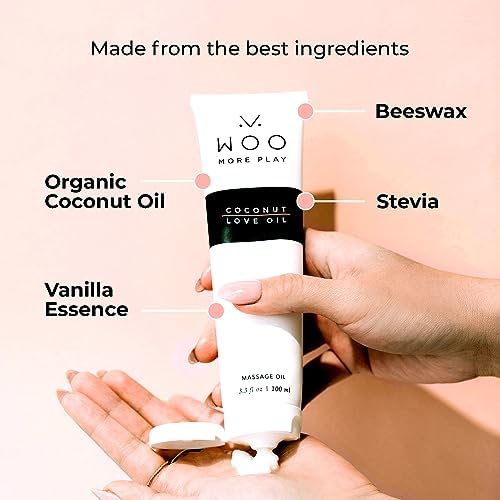 Woo More Play Coconut Love Oil | Organic Coconut Oil Personal Lubricant for Men and Women | Natural and Clean Ingredients | Doubles as Massage Oil | Relaxing Scent | 3.3 fl Oz