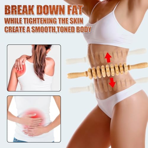 【Efficient Anti-Cellulite Massager】 The wooden therapy massage roller can improve stubborn fat deposits and dimpled skin,helping lymphatic drainage, muscle stimulation, and fat breakdown in targeted areas. Use it as a fat roller for your stomach or as a contouring stick for your waist, hips, thighs, buttocks, and other parts of the body.