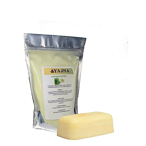 Yajna Organic Raw Aloe Vera Butter 100% Pure,Natural & Unrefined| Skin Moisturizer For Face, Body & Hair| 4 OZ/115 GM Ivory/White Grade A | DIY Creams, Balms, Lotions, Soaps| Softens Dry & Tough Skin