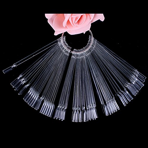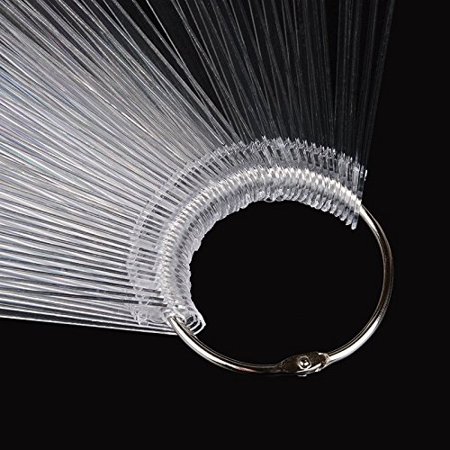 yueton 2 Set Total 100 Tips Transparent Fan-shaped Nail Art Tips Display Polish Board Display Practice Sticks Tool with Metal Screw Split Ring Holder