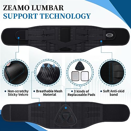 ZEAMO Back Brace for Men Lower Back Pain Relief, Adjustable Lumbar Support Belt with 3 kinds of replacement lumbar pads, Lower Waist Support for Herniated Disc, Sciatica, Scoliosis(Size: XL)