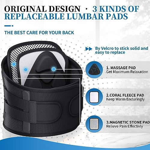 【Original design – 3 kinds of removable lumbar pads】 Unlike similar products on the market, our back brace for men lower back comes with 3 different lumbar cushion pads that serve various functions. These pads closely fit to relax, relieve, and warm your back, providing targeted relief for herniated discs, sciatic nerve issues, back pain, muscle pain, and other back problems.