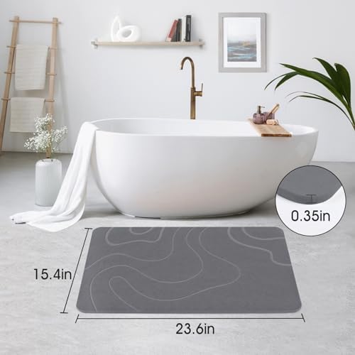 ZIKIBL Stone Bath Mat Diatomaceous Earth Bath Mat Super Absorbent Non-Slip Diatomite Stone Bath Mats for Bathroom Quick-Drying Stone Shower Mat Easy to Clean (24 * 16”Grey)