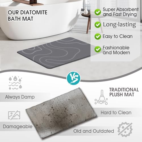 【✅Stylish and Modern】Our innovative bath stone mats are a fantastic addition to your home. Their minimalist designs effortlessly complement any decor, making them a versatile addition not just in the bathroom, but also as great kitchen drying mats, entryway mats, dish rack mats, pet bowl mats, and poolside mats.